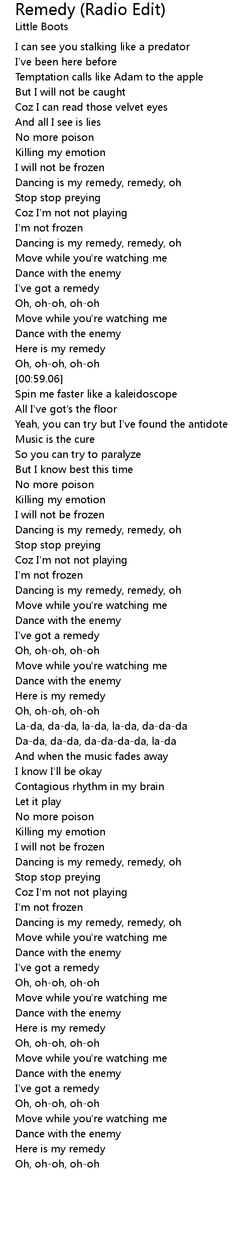 Dancing is my remedy, remedy, oh |