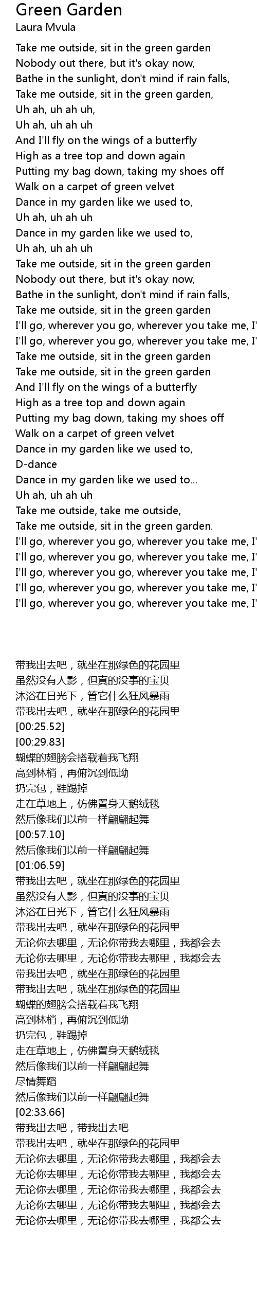 Take me outside, sit in the green garden. |