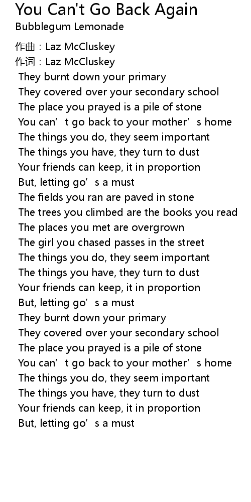 | Song | You Can't Go Back Again |