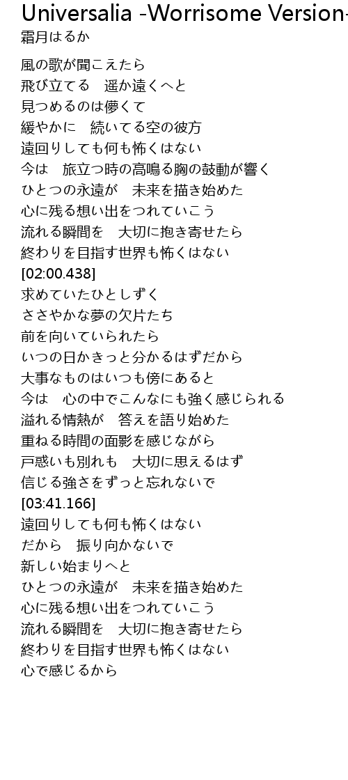 | [03:23.351] | 戸惑いも別れも 大切に思えるはず |