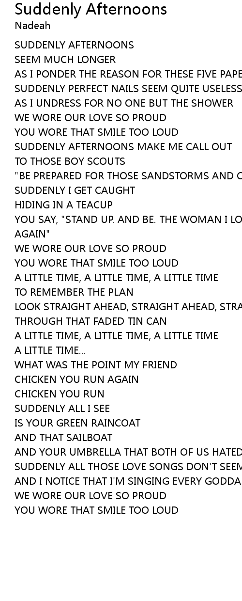 SUDDENLY AFTERNOONS MAKE ME CALL OUT |