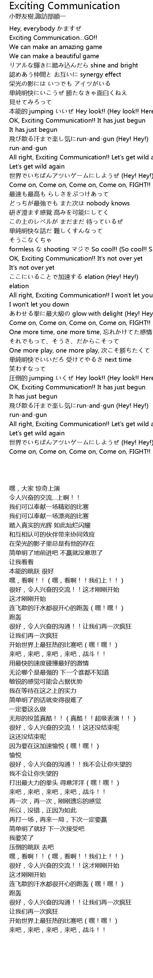 | [01:02.82] | All right, Exciting Communication!! Let' s get wild again |