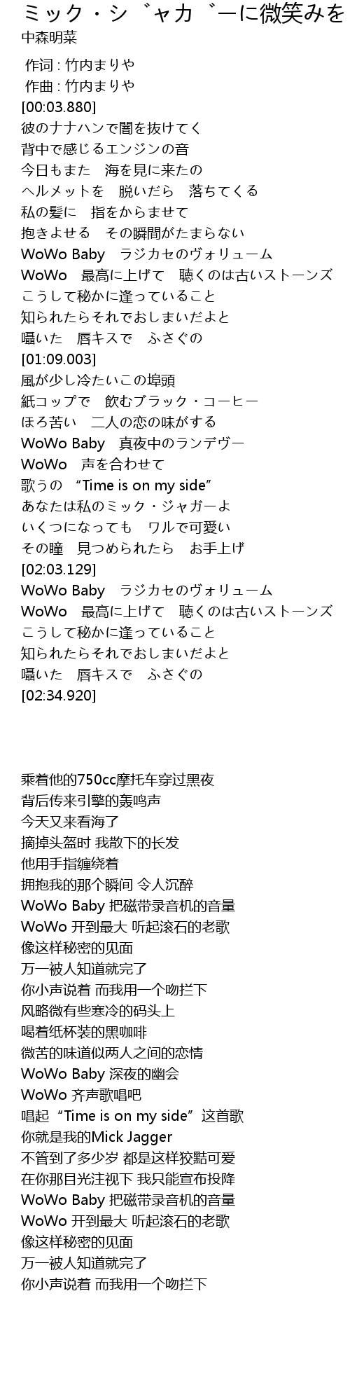 | [01:49.911] | あなたは私のミック・ジャガーよ |