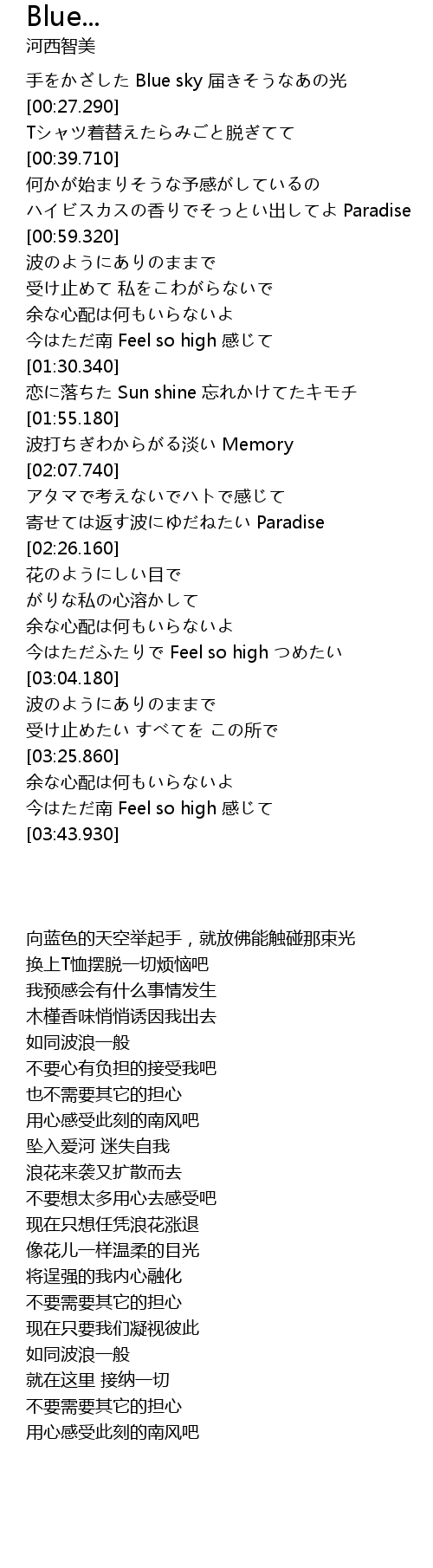 | [03:34.490] | 今はただ南 Feel so high 感じて |