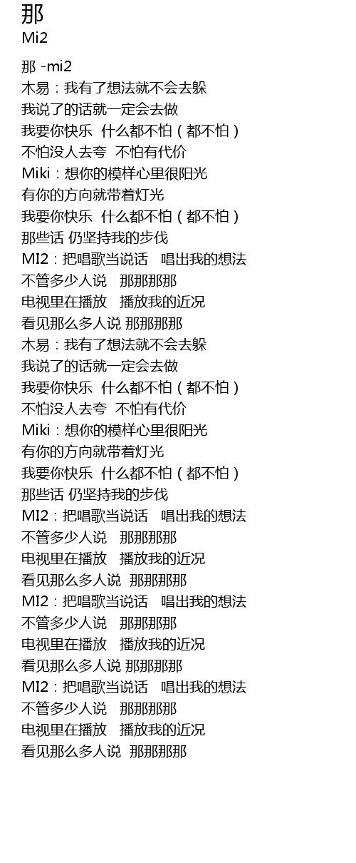 | [03:02.07] | MI2:把唱歌当说话 唱出我的想法 |