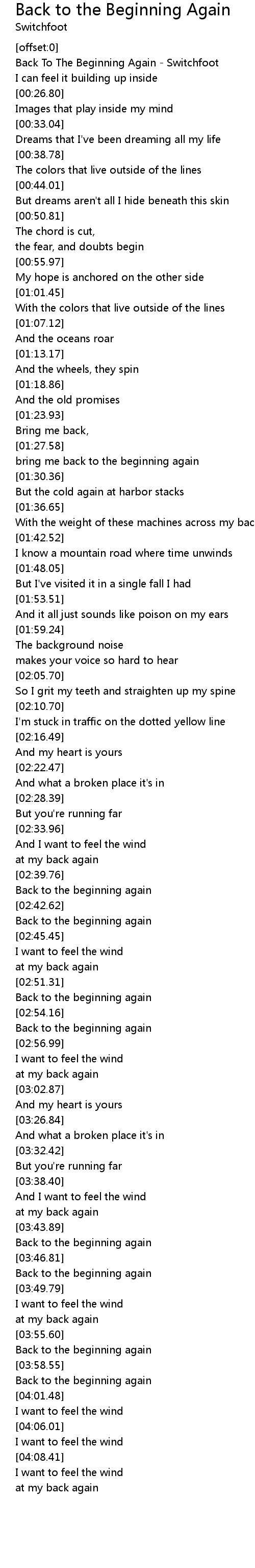 Back To The Beginning Again - Switchfoot |