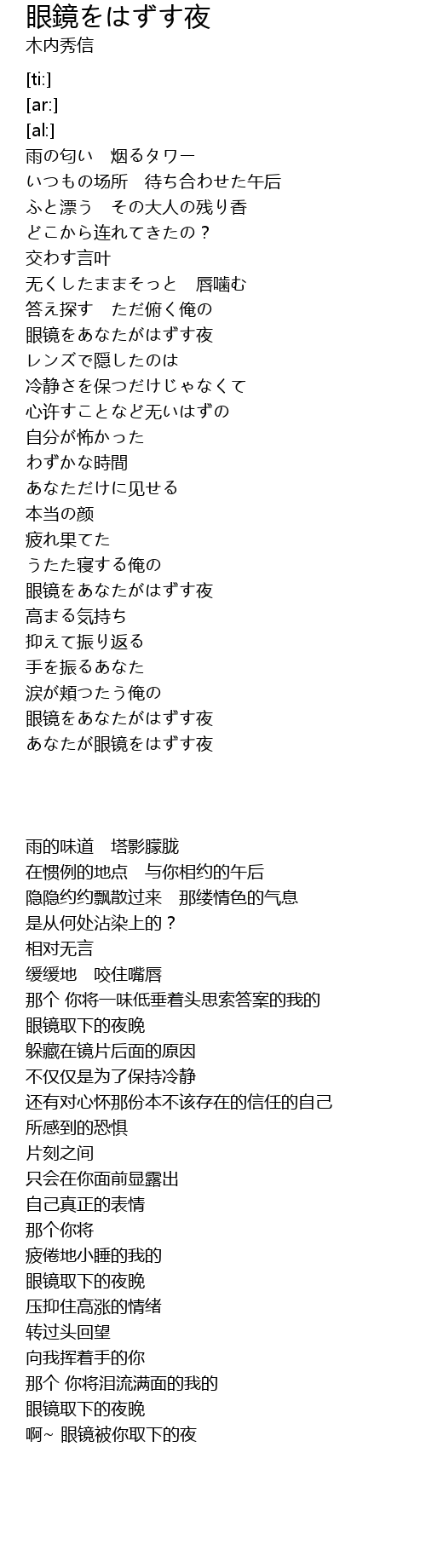 | [03:38.23] | 眼镜をあなたがはずす夜 |