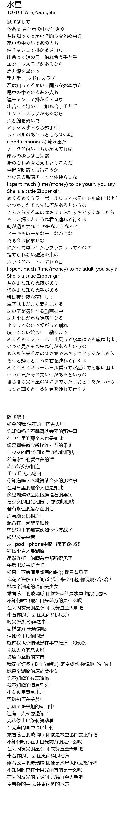| [03:10.388] | めくるめくミラーボール乗って水星にでも旅に出ようか |