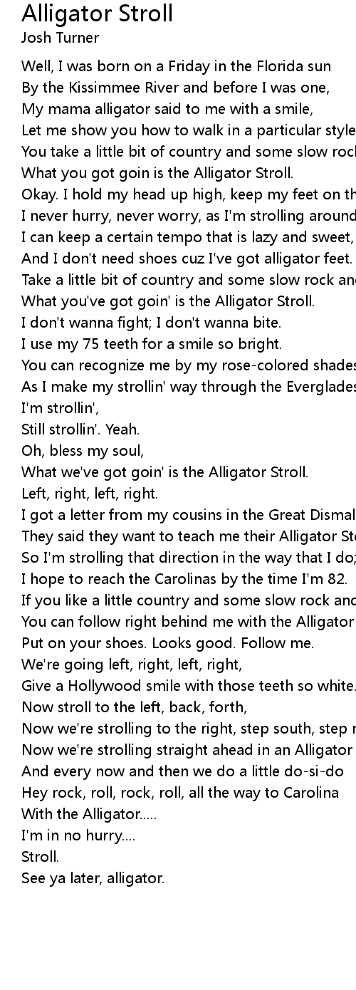 You can follow right behind me with the Alligator Stroll. |