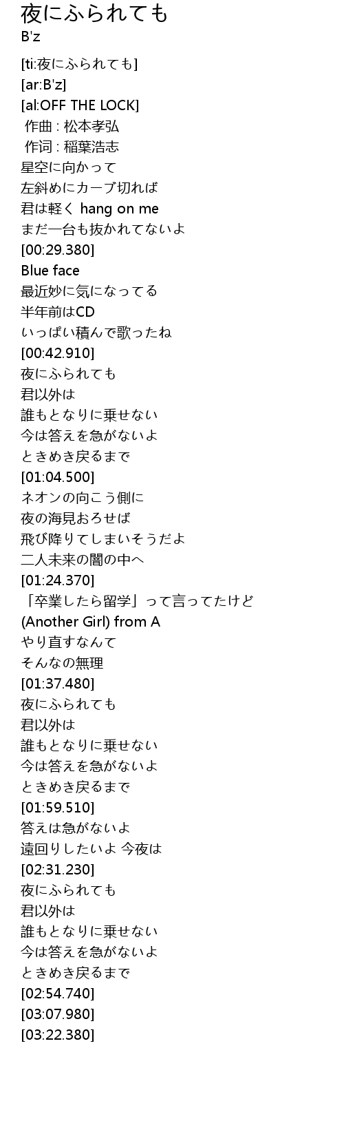 | [00:01.00] | 作词 : 稲葉浩志 |