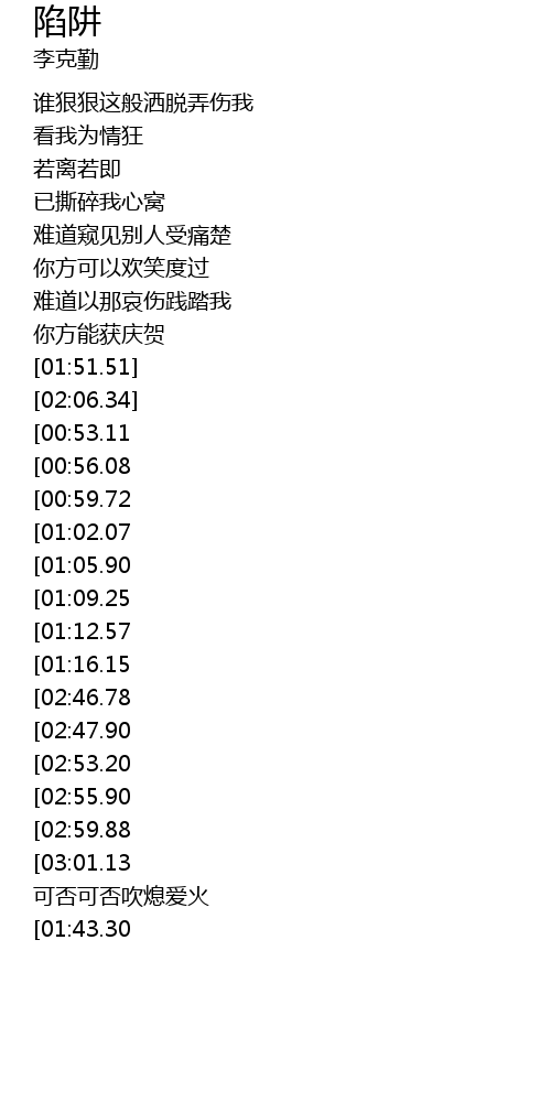 | [03:26.46][02:59.88][01:36.62] | 堕入陷阱 |
