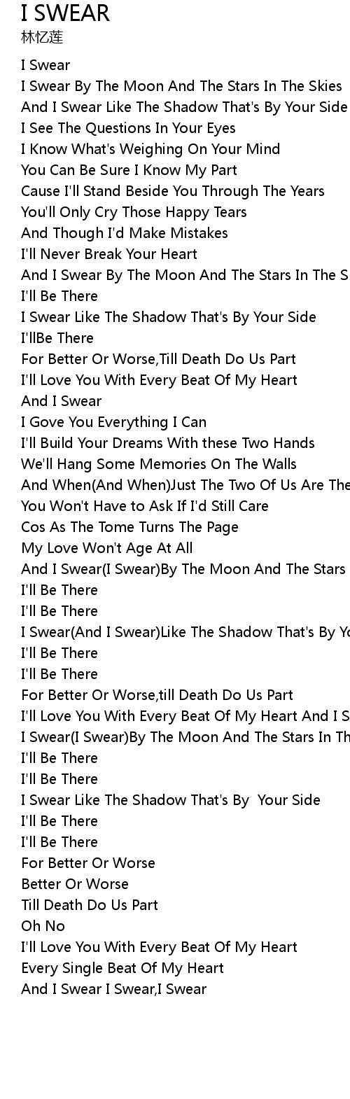 | [02:28.46] | And I Swear(I Swear)By The Moon And The Stars In The Skies |