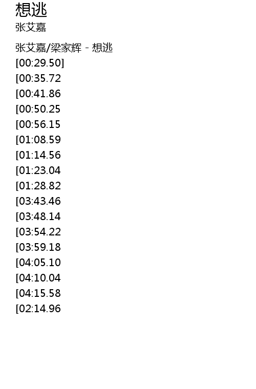 | [00:00.00] | 张艾嘉/梁家辉 - 想逃 |
