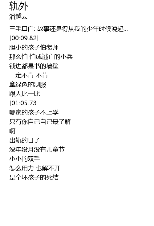 | [00:06.01] | sān máo kǒu bái: gù shì hái shì de cóng wǒ de shào nián shí hòu shuō qǐ... |
