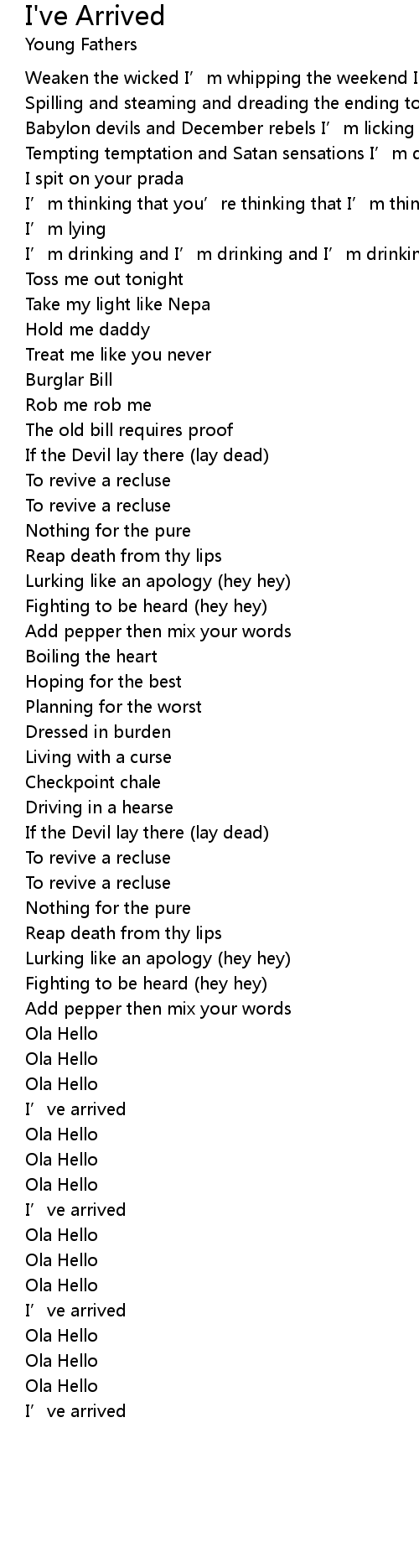 | Song | I've Arrived |