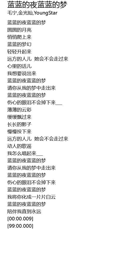 | [00:59.03] | 蓝蓝的夜蓝蓝的梦 |