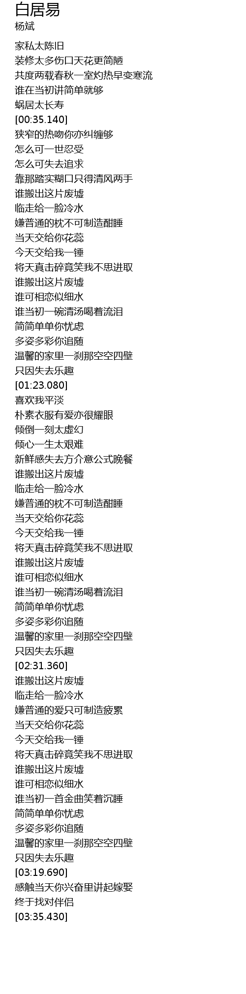 | [02:47.530] | xián pǔ tōng de ài zhǐ kě zhì zào pí lèi |