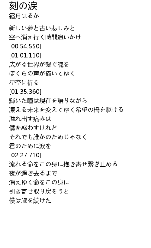 | [00:41.760] | 空へ消え行く時間追いかけ |