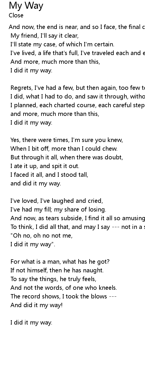 I did it my way". |