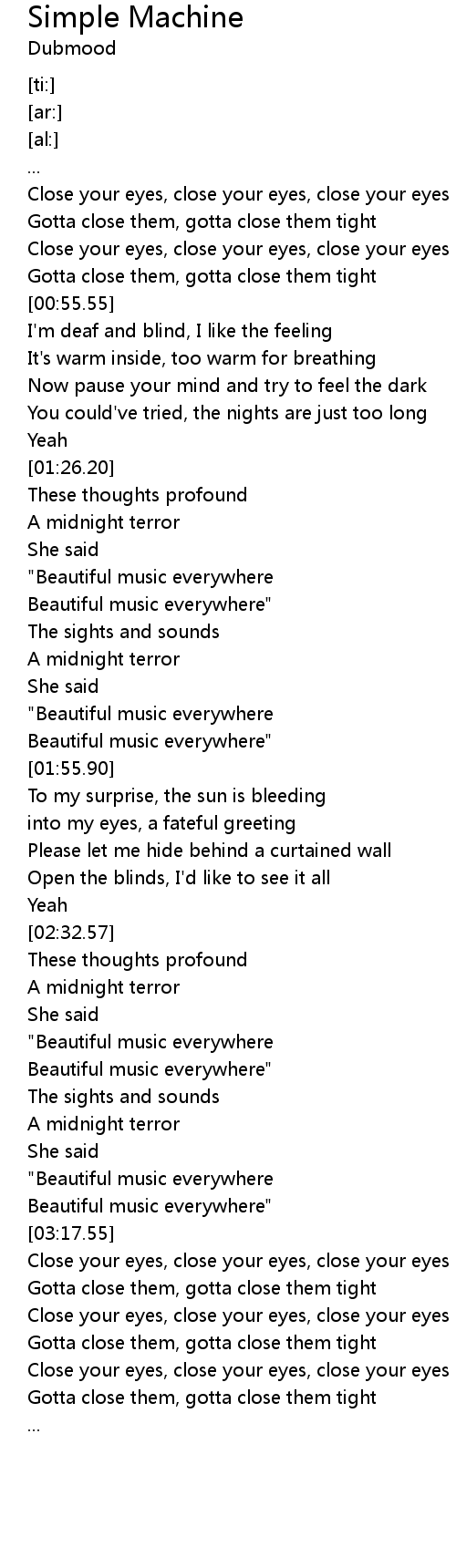 | [00:48.94] | Close your eyes, close your eyes, close your eyes now |