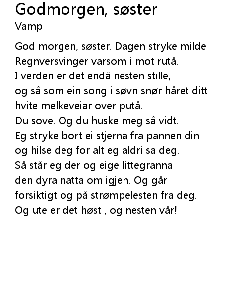 | God morgen, søster. Dagen stryke milde | |