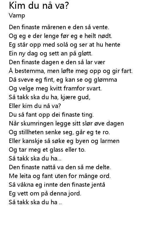 | Og eg e der lenge før eg e heilt nødt. | |