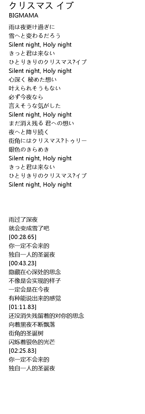| [00:28.65] | Silent night, Holy night |