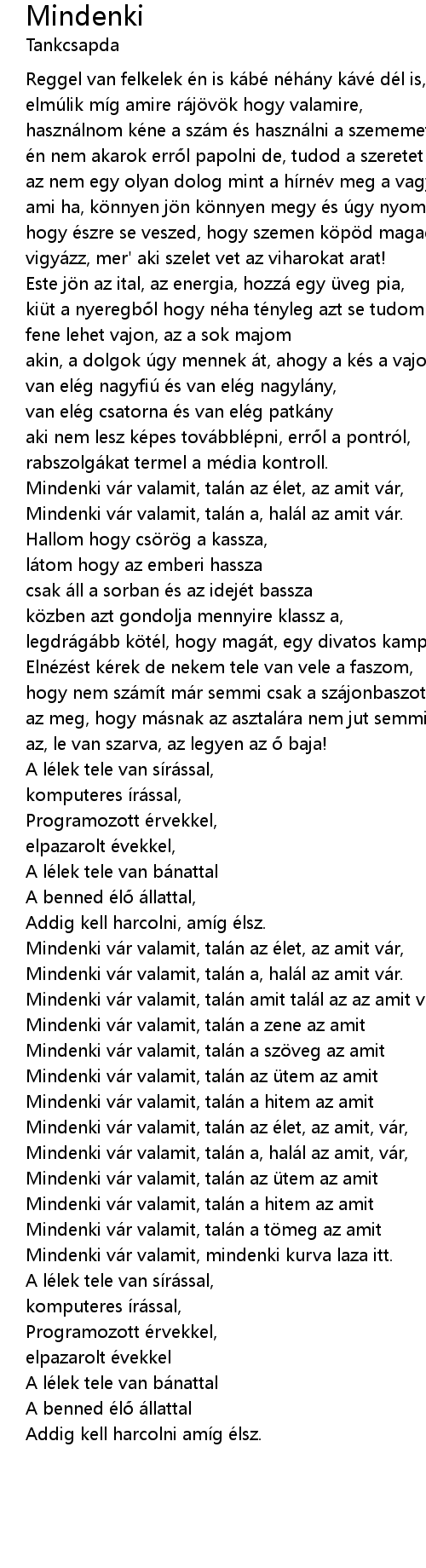 | Mindenki vár valamit, talán az élet, az amit, vár, | |