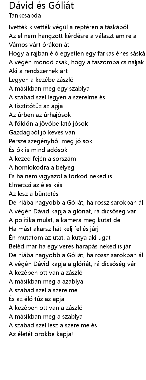 | A ve ge n Da vid kapja a glo ria t, ra dics se g va r | |