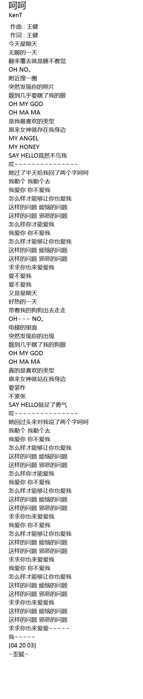 | [00:43.07] | SAY HELLO竟然不鸟我 |