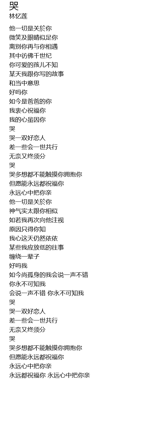 | [02:38.04] | 哭多想都不能触摸你拥抱你 |