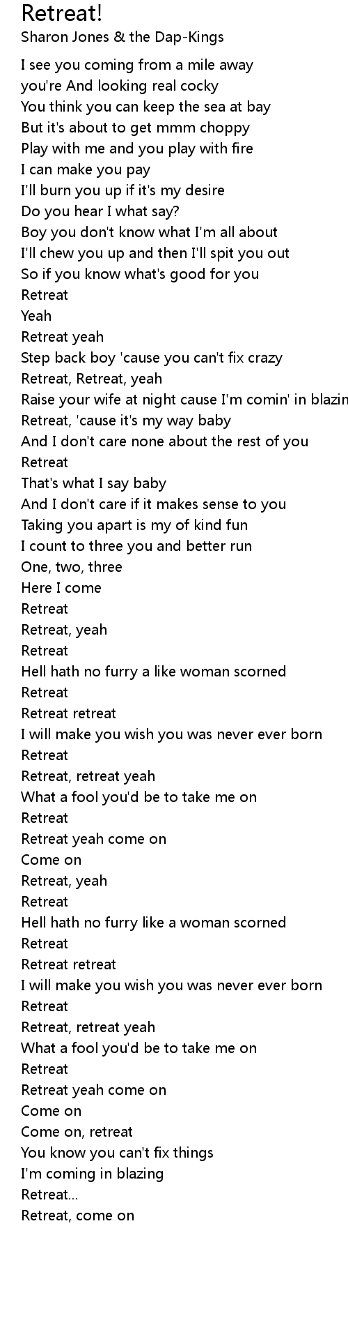 Retreat, Retreat, yeah |