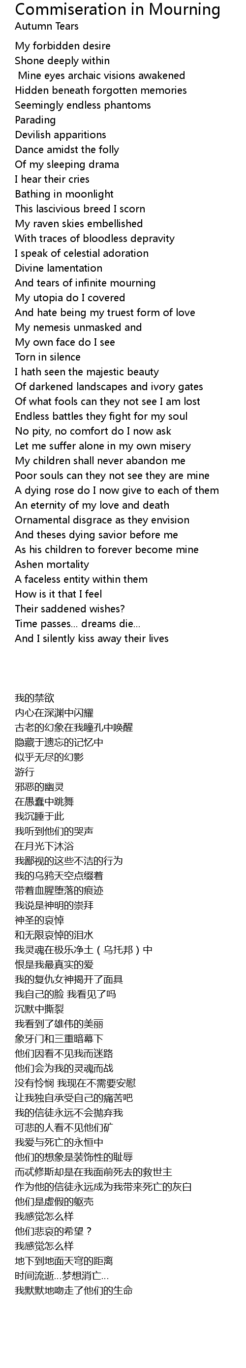And tears of infinite mourning |