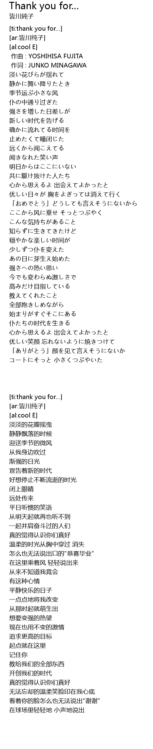 | [00:01.00] | zuò cí : JUNKO MINAGAWA |