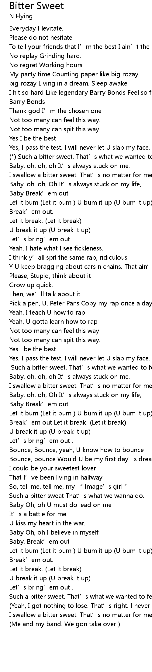 | [02:14.47] | Such a bitter sweat That' s what we wanna do. |