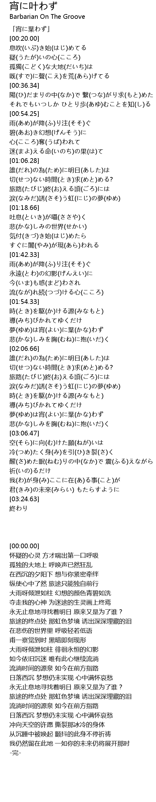 | [01:00.55] | 心(こころ)奪(うば)われて 迷(まよ)える命(いのち)の果(は)て |
