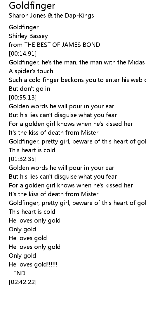 Goldfinger, pretty girl, beware of this heart of gold |