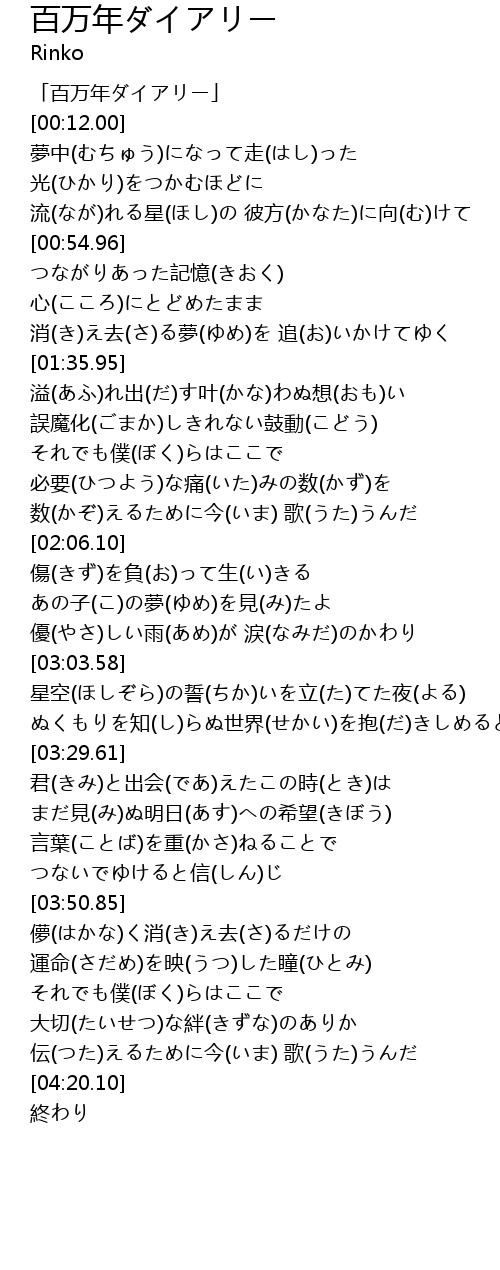 | [00:00.00] | 「百万年ダイアリー」 |