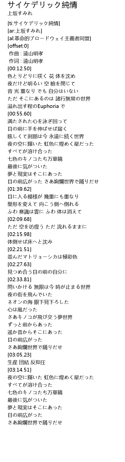 | [03:39.06] | 七色のキノコたち万華鏡 |