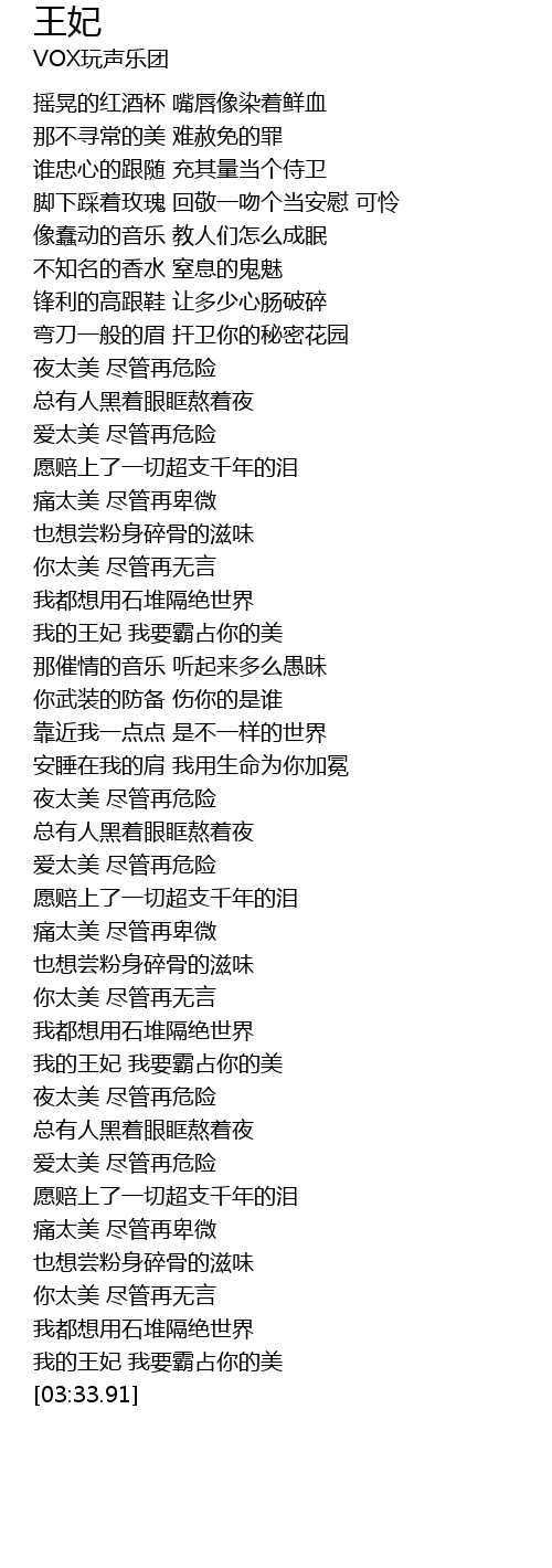 | [03:27.07] | 我的王妃 我要霸占你的美 |