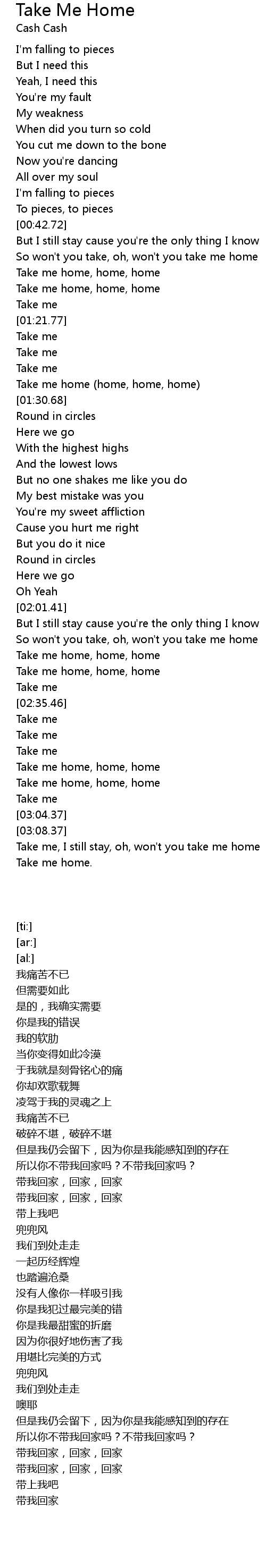 Take me, I still stay, oh, won't you take me home |