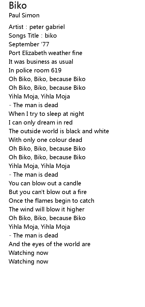 | Oh Biko, Biko, because Biko | |