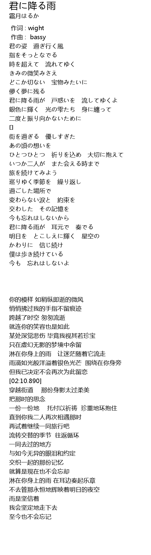 | [01:32.490] | 君に降る雨が 戸惑いを 流してゆくよ |