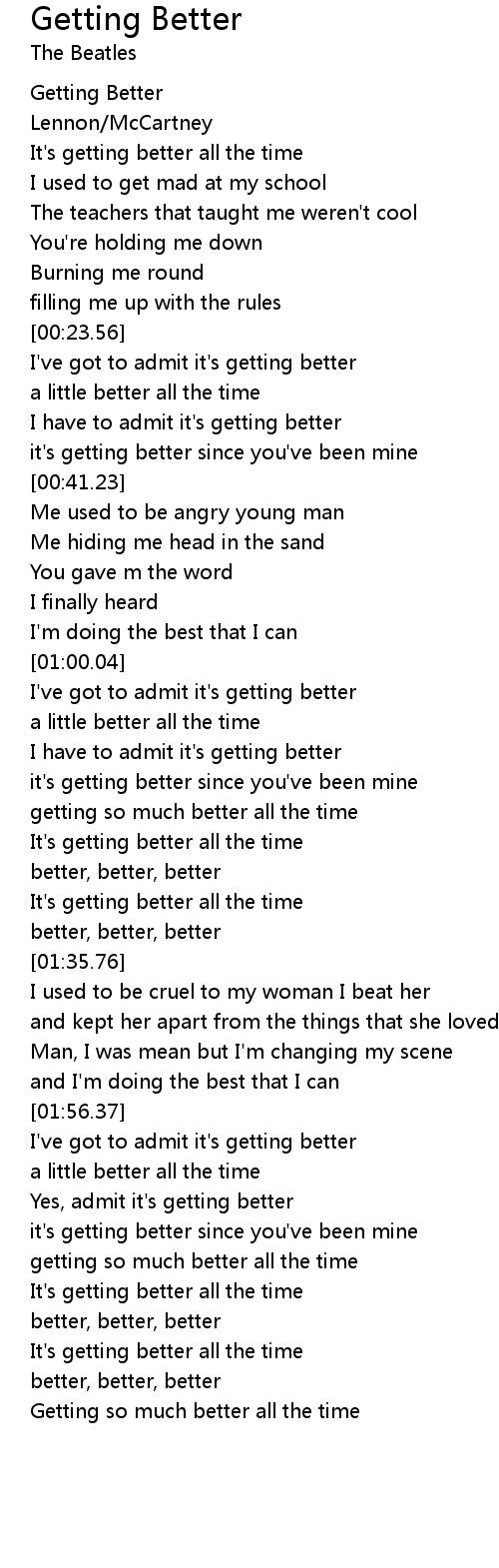 I've got to admit it's getting better |
