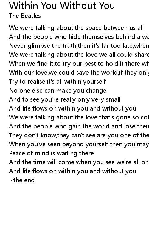 And life flows on within you and without you |