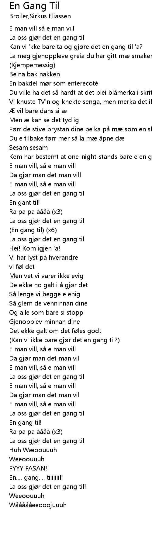 | [00:11.71] | La meg gjenoppleve greia du har gitt mæ smaken på |