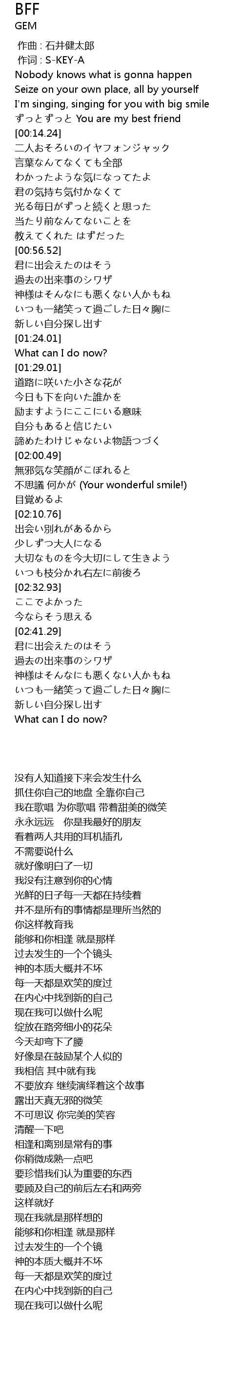 | [01:14.12] | いつも一緒笑って過ごした日々胸に |