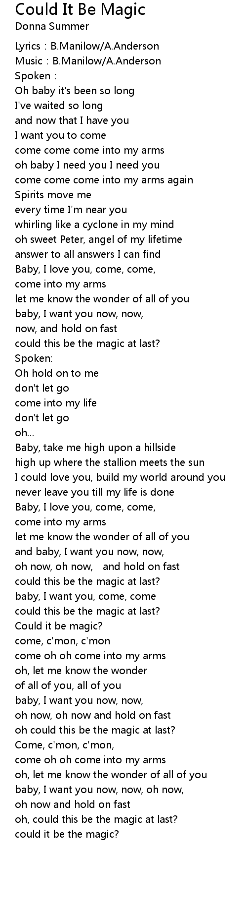 | Song | Could It Be Magic |