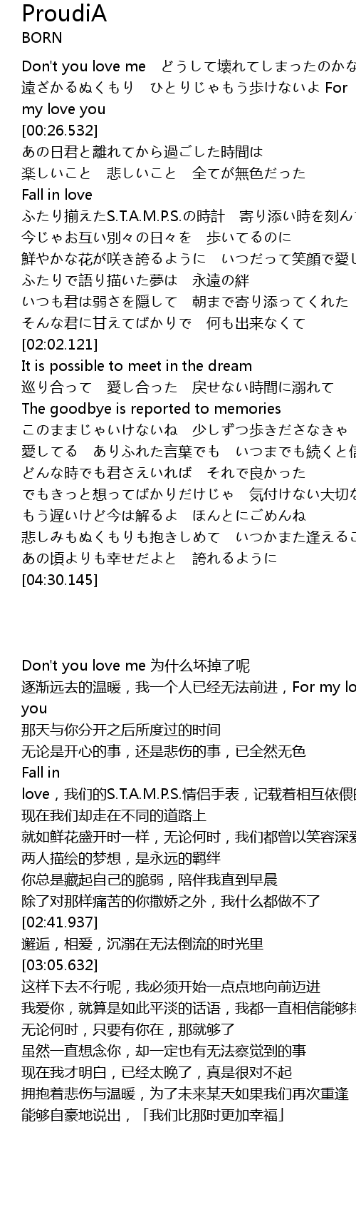 | [00:59.954] | Fall in love jian S. T. A. M. P. S. shi ji ji tian shi ke |