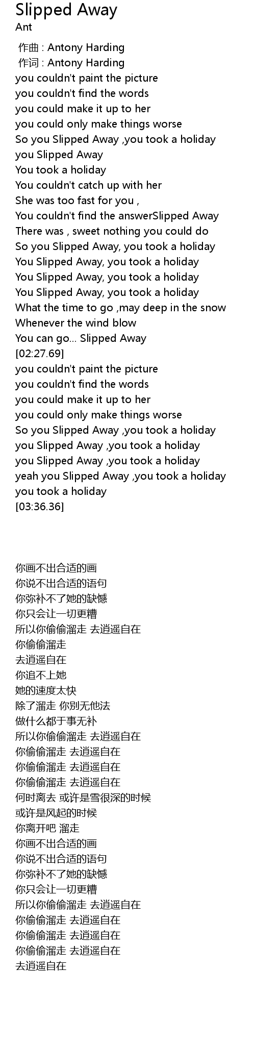 | [00:46.34] | So you Slipped Away , you took a holiday |
